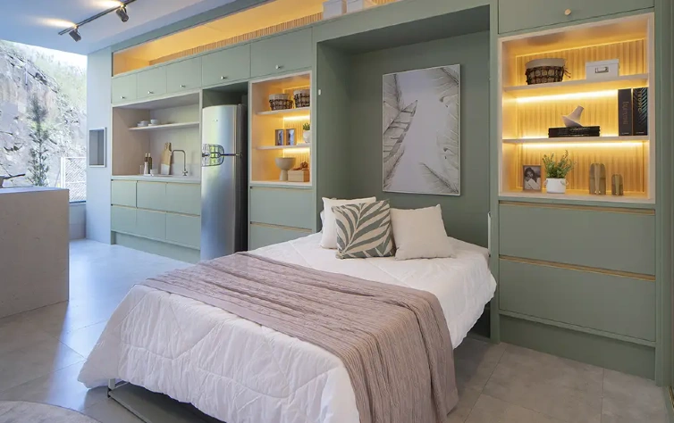 Os projetos da Italínea mostram como a iluminação pode ser incorporada ao mobiliário de maneira discreta e sofisticada. Em ambientes de estar, por exemplo, a luz integrada a painéis contínuos cria uma sensação de profundidade que valoriza tanto as cores quanto a arquitetura do espaço. Já em áreas de circulação, pontos lineares de LED embutidos nas laterais dos móveis ajudam a orientar o percurso e trazem um efeito visual contemporâneo.
